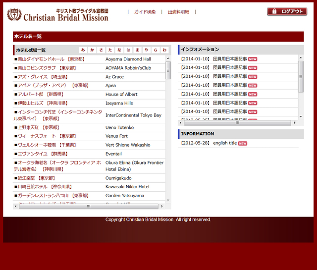 ホテルガイド検索、出演料明細表示機能(月毎)