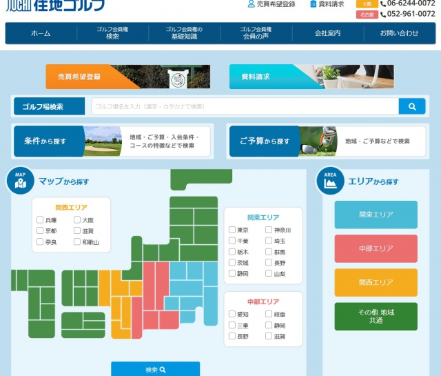ゴルフ会員権 売買サイト【サービス内容】 多機能検索機能・イージーベース