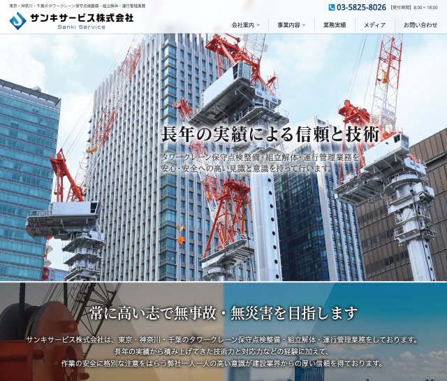 東京・神奈川・千葉のタワークレーン保守点検整備・組立解体・運行管理業務【サービス内容】 イージーベース、レスポンシブWebデザイン