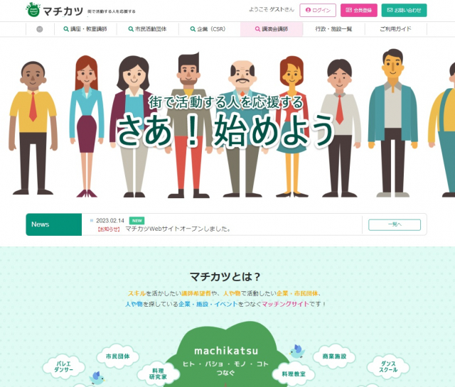 街で活動する人を応援するマッチングサイト【サービス内容】 ホームページ制作、レスポンシブWEBデザイン