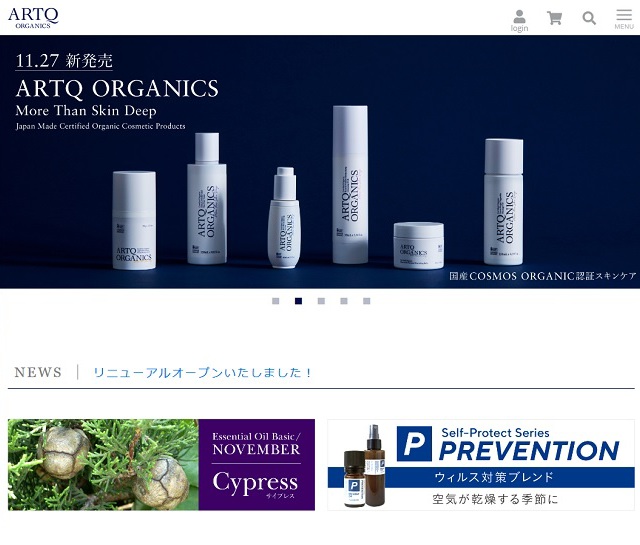 ARTQ ORGANICSのブランドサイト【サービス内容】 レスポンシブWebデザイン