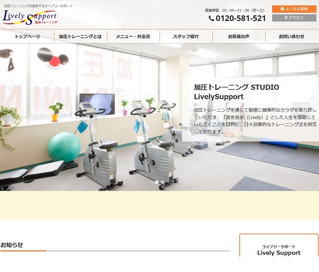 フィットネスジム【サービス内容】 ホームページ制作、WEBデザイン、javascriptスライドショー