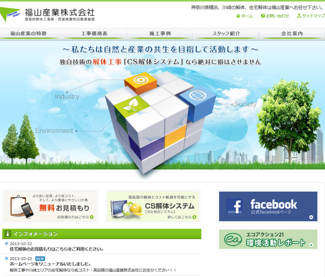 建造物解体工事、産業廃棄物処理【サービス内容】 ホームページ制作、WEBデザイン、javascriptスライドショー、SEO、イージーベース
