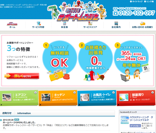ハウスクリーニング【サービス内容】 ホームページ制作、WEBデザイン、イージーベース、facebookプラグイン